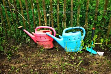 Keywords: can watering can equipment gardening water horticulture pink blue plastic