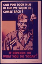 | Keywords: "Can You Look Him in the Eye When He Comes Back^ It Depends on What You do Today" - NARA - 514638.tif Scope and content General notes 514638 Local identifier 44-PA-1111 Office for Emergency Management Office of War Information Domestic Operations Branch Bureau of Special Services 03/09/1943 - 09/15/1945 NARA-Author Packer poster artist Artist 8467744 <br /> Still Picture Records Section Special Media Archives Services Division NWCS-S National Archives at College Park 8601 Adelphi Road College Park MD 20740-6001 1941 - 1945 Record group Record Group 44 Records of the Office of Government Reports 1932 - 1947 Record group ARC 373 World War II Posters compiled 1942 - 1945 Series ARC 513498 File unit File unit ARC Variant control numbers NAIL Control Number NWDNS-44-PA-1111 yes Other versions <gallery> File Can_You_Look_Him_in_the_Eye_When_He_Comes_Back _It_Depends_on_What_You_do_Today _-_NARA_-_514638 tif tif File Can_You_Look_Him_in_the_Eye_When_He_Comes_Back _It_Depends_on_What_You_do_Today _-_NARA_-_514638 jpg jpg </gallery> NARA-cooperation PD-USGov World War II posters from the United States NARA TIF images with categorized JPGs |