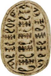 | Keywords: Canaanite - Scarab with Three Columns of Pseudo-hieroglyphs - Walters 4219 - Bottom (2).jpg The ancient Egyptians believed that the dung beetle the Scarabaeus sacer was one of the manifestations of the sun god Representations of these beetles were used as amulets and for ritual or administrative purposes This scarab has a special motif on the bottom which is known as a-n-r-combination because it consists of the sound-signs for 'ayn n and r The signs are arranged in three columns combined with lotus blossoms at the beginnings and ends; the columns are framed by an oval line The bottom design is deeply incised and the shape of the signs typical for the Second Intermediate Period n with a horizontal line crossed by short vertical lines c with a curved line and an oval lop at the end The highest point of the back is the elytron wing cases ; two side-notches at shoulder height define the partition between pronotum dorsal plate of the prothorax and elytron The head is trapezoidal and the clypeus has four frontal serrations and a central base notch The design of the back is simple the carved side-notches short and not totally aligned The proportions are unbalanced and the pronotum is short in comparison to the head section and the elytron The raised extremities have natural form and vertical hatch lines; the background between the legs is hollowed out The base is long-oval and the head part smaller than the rear part The scarab is longitudinally pierced was originally mounted or threaded and served as an amulet Probably it should grant magical and/or divine support a-n-r-pattern and regeneration lotus It is not possible to determine the exact meaning of the a-n-r-pattern although several options such as a relation to the name of the god Re or to a magical formula have been discussed In this special case with the dominance of c and n it would make sense to consider a magical formula which should strengthen the recreative scarab and regenerative lotus function by repetition ca 1648 1539 BC Second Intermediate; MB IIB light beige steatite cm 9 1 5 2 1 accession number 42 19 5337 Henry Walters Baltimore 1911 mode of acquisition unknown Walters Art Museum Henry Walters Acquired by Henry Walters 1911 Inscription Three columns of pseudo-hieroglyphs in the so-called a-n-r-combination combination of the sound signs c n and r place of origin Palestine <gallery> File Canaanite - Scarab with Three Columns of Pseudo-hieroglyphs - Walters 4219 - Bottom jpg </gallery> Walters Art Museum license Ancient Near East art in the Walters Art Museum Canaanite art Media contributed by the Walters Art Museum needs category review Three-column layout |