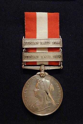 | View Original: | Canada General Service Medal, awarded to Pte. Allan Poyntz Patrick, Queen's Own Rifles, for the Fenian Raids of 1866 and 1870 - Glenbow Museum - DSC00634.JPG (3154x4688) | |||
