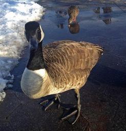 | Keywords: Canada Goose in New York 2015.jpg en Canada goose Branta canadensis in Tarrytown New York February 2015 A female mallard trails in the background 2015-02-22 15 45 11 own SteveStrummer other versions 41 076875 -73 864769444444 heading 293 40356083086056 cc-zero Uploaded with UploadWizard Branta canadensis Birds of New York |