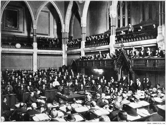 Keywords: Canada House Commons QE1 16.jpg The House of Commons of Canada in session circa 1899 in Ottawa Ontario Canada This photograph shows the original chamber of the House of Commons of Canada 1859-1916 destroyed in the Parliament Hill fire of 1916 <p> Original caption The Canadian House of Commons in Session Next to the Imperial Parliament at Westminster the Dominion Parliament at Ottawa is undoubtedly the most dignified and important Legislative Assembly in the British Empire We have here a representation of the Canadian House of Commons in Session in the position of the Speaker in the procedure in debate and in the arrangement of parties on the two sides of the House British precedents are closely followed The arrangement of seats in an assembly may seem a matter of slight importance but there can be no doubt that the sharp distinction into two sides has gone far to prevent the creation of the many small parties which almost inevitably spring up in a semicircular Chamber where the extreme right the right the right centre the left centre and so on are all recognisable divisions The Queen's Empire Volume 1 Cassell Co London 1899 Cassell Co PD-Canada PD-old-70-1923 The Queen's Empire book Original Chamber of the House of Commons of Canada 1859-1916 1899 in politics of Canada 1899 in Ottawa |