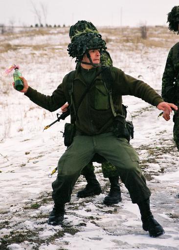 | Keywords: Canadian Forces soldier throwing Molotov cocktail.jpg Canadian Forces soldier throwing Molotov cocktail self-photographed original caption Photograph from Aboutblank11 1 <br/> Transferred from http //en wikipedia org en wikipedia to Commons by User Sreejithk2000 using http //tools wikimedia de/~magnus/commonshelper php CommonsHelper 2007-07-05 Aboutblank11 at http //en wikipedia org en wikipedia Aboutblank11 Original upload log page en wikipedia Canadian_Forces_soldier_throwing_Molotov_cocktail jpg 2007-07-05 20 03 Aboutblank11 1500×2100× 1162830 bytes Canadian Army Molotov cocktail |
