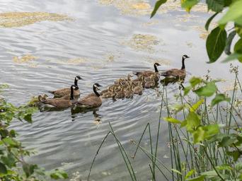 Keywords: canadian geese family chicks young swimming lake water wildlife nature waterfowl geese female male wild outdoors