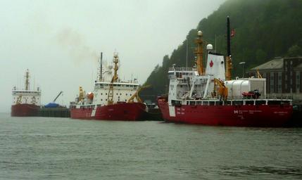 Keywords: canadien coast guard vessel ship rainy day saint lorenz river quebec quebec city canada rescue