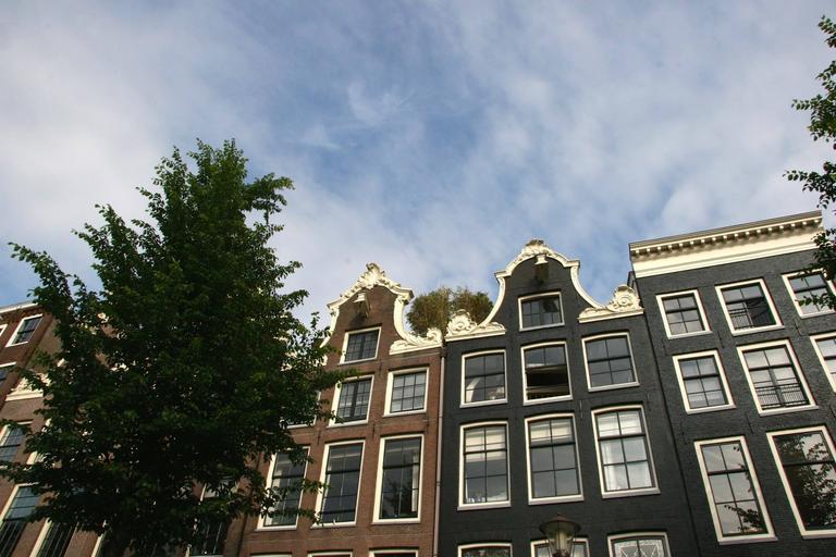 Keywords: canal house canal blue air clouds tree amsterdam city town house netherlands cityscape roofs amstel
