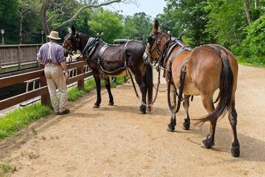 Keywords: canal man mules summer spring animals towpath trees nature outside rural