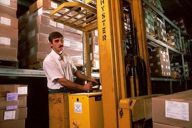 | Keywords: Cancer information service- warehouse.jpg A Caucasian male driving a fork lift This is the warehouse for the storage and distribution of NCI publications ordered through the Cancer Information Service CIS Topics/Categories People -- Adult People -- Health Professional Type Color Photo Source National Cancer Institute John Crawford Photographer 2356 1988-09 Reuse Restrictions None - This image is in the public domain and can be freely reused Please credit the source and/or author listed above John Crawford Photographer PD-USGov-HHS-NIH Media from National Cancer Institute Visuals Online Images uploaded by Fæ |