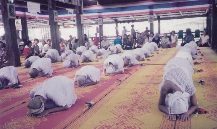 Keywords: Candidate for the Buddhist priesthood is humbling.jpg candidate for the Buddhist priesthood is humbling oneself before a preceptor Uttaradit Thailand own 1998 Ordination at Wat Khung Taphao Buddhist ordinations in Thailand