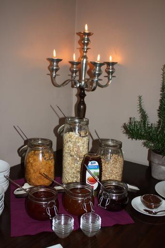 Keywords: candle holders muesli jam breakfast breakfast buffet buffet eat food spread honey sweet restaurant gastronomy delicious benefit from have breakfast