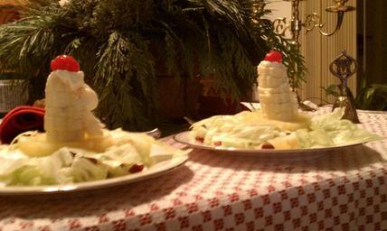 Keywords: Candle salads.jpg en Candle salad slightly modified by slicing the banana instead of leaving it whole own Judielaine 2010-12-24 Candle salads