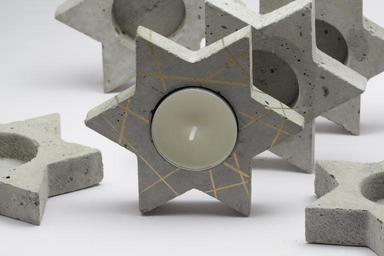 Keywords: candle tea light tea light holder star concrete cement grey lines