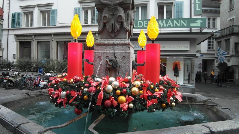 Keywords: candles advent advent wreath christmas decoration flame light red yellow fountain