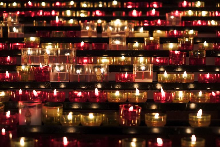 Keywords: candles church flame candlelight fire burning light decoration wax dark tranquil religious