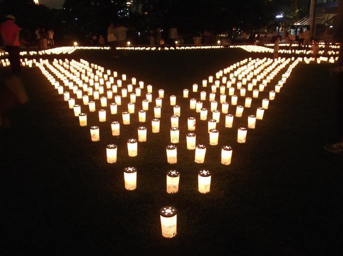 Keywords: candles night evening glow lights glowing outside people