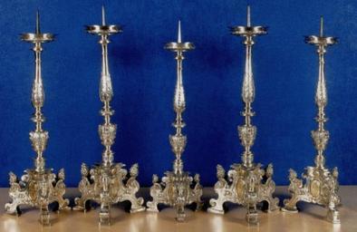 | Keywords: Candlesticks of Constance of Austria.jpg Candlesticks of Constance of Austria Świeczniki Konstancji Austriaczki ca 1624-1625 Silver gilt cm 70 5 66 63 Church of St James Nysa accession number object history < 1624 commission Constance of Austria Warsaw < 1655 gift Church of St James in Nysa Charles Ferdinand Vasa credit line Initially a set of 6 altar candlesticks Base adorned with cartouches with emblems of Poland Lithuania Sweden Gothland and the Habsburgs arms of Queen Constance of Austria cherubs winged heads and friuts own BurgererSF Copyright expired PD-Art Saints James and Agnes Basilica in Nysa Goldsmithery from the Polish Vasa Collection Church candlesticks Johannes Lencker |