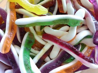 Keywords: candy sugar delicious jelly colorful many snakes nibble dental caries mess pile pattern