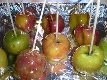 Keywords: Candyappels.JPG en Candy appels sv Kanderade äpplen own Anette B 2004-11-03 Candy apples Taken with Minolta Dimage F300