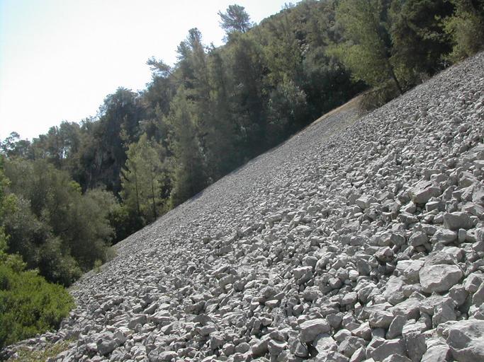 Keywords: CanhaoOta.JPG pt Cascalheira na parede direita do canhão da Ota Ota Alenquer Own CorreiaPM 2009-08 ver licença Alenquer Karst topography