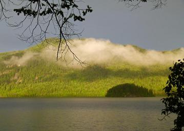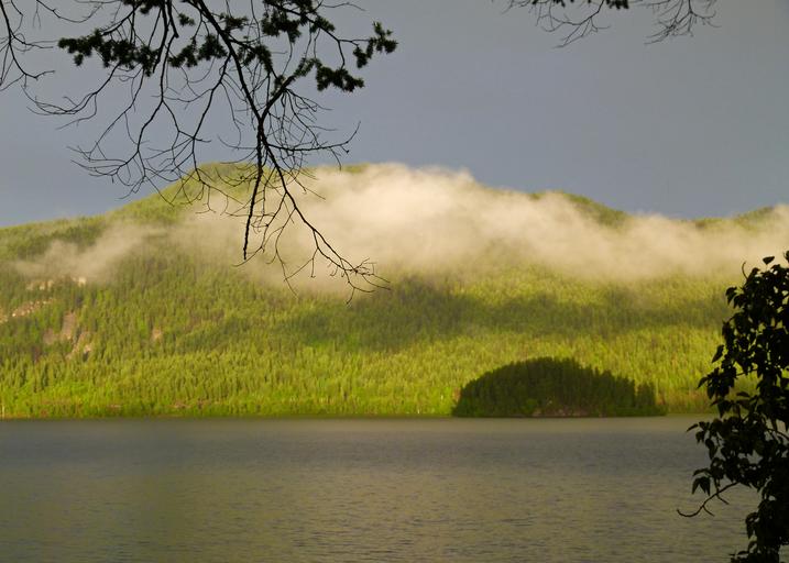 Keywords: canim lake british columbia canada thunderstorm scenery landscape weather clouds island sky mood nature hill