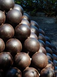 Keywords: cannon balls balls iron metal hard shoot piled up about