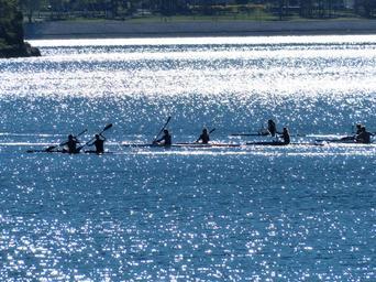 Keywords: canoeists canoe tour canoes canoe trip canoe course water sports lake water sparkle shine back light