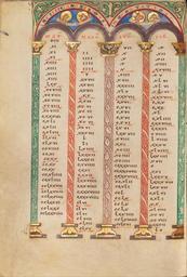 | Keywords: Canon Table Page - Google Art Project (6807946).jpg None 430703 Unknown /collection/the-j-paul-getty-museum/artwork/canon-table-page-unknown/6807946/ Unknown illuminator /collection/the-j-paul-getty-museum/ The J Paul Getty Museum 343005 http //www getty edu/museum 3/12/2012 5 14 15 PM /collection/the-j-paul-getty-museum/artwork/canon-table-page-unknown/6807946/ 1120 about 1120 - 1140 Saint Luke Saint Mark Saint John the Evangelist Saint Matthew Tempera colors gold and silver on parchment 229 6807946 True 1140 3/25/2012 9 33 38 AM lido getty edu-gm-obj110034 http //www getty edu/art/gettyguide/artObjectDetails artobj 110034 http //www getty edu/legal/copyright html Folio 1120 1150 Helmarshausen Germany Creation w165 x h229 cm about 1120 - 1140 False 0 67578125 Part canon-table-page-unknown Canon Table Page c 165 Tempera colors gold and silver on parchment Saint Luke Saint Mark Saint John the Evangelist Saint Matthew http //www getty edu/legal/copyright html special url_id ZQFVORINRdP0Yg PD-old-100 MS LUDWIG II 3 Getty museum - Gospel book from Helmarshausen Canon tables Google Art Project works by unknown artist |