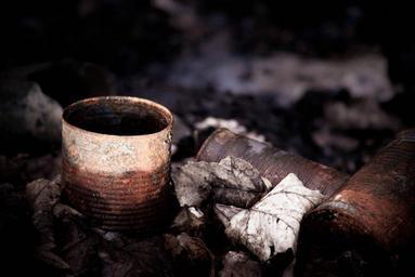 Keywords: cans trash garbage waste rubbish tins rusty ground macro pollution leaves dirt metal dump litter