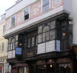 | Keywords: Canterbury 001 Queen Elizabeths guestchamber.jpg Canterbury England For a small commercial building this one is rare in the degree that it reveals its architectural history The ground floor is probably medieval and may be as early as 13th century but its street-front is late Victorian and 20th century with 19th and 20th Century glass The abutting first floor containing Queen Elizabeth I's chamber is dated 1573 and retains most of its original oak timbering Tudor style window openings with depressed arches and brick infill Some of the glass is probably Tudor The jutting bay windows appear to date from about 1670 The glass is almost entirely original The upper floor with its elaborate pargetting of vintaging putti cherubs and grapevines also dates from the late 1600s and has Georgian sash windows photo TTaylor self 2006 User TTaylor PDOld 16th-century houses in Kent Historic houses in Kent Jetty timber framing in England Putti Oriel windows in England Queen Elizabeth's Guest Chamber Canterbury Stuccos in the United Kingdom Sculptures of grapes Pargeting |