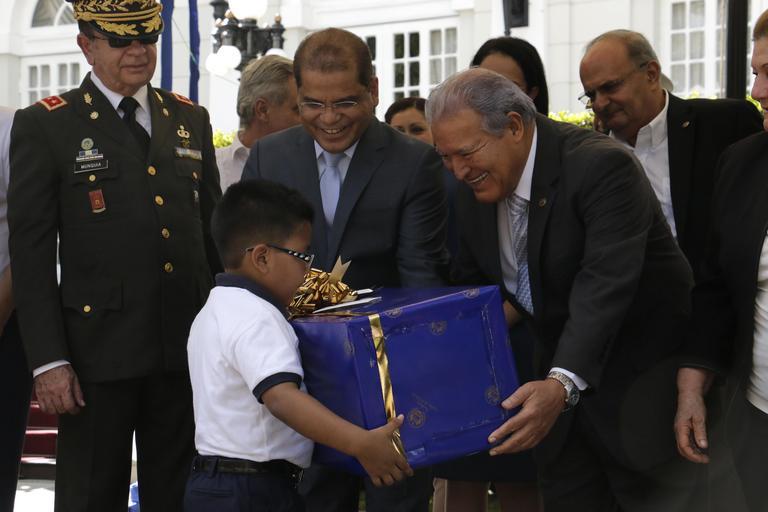 | Keywords: Presidente Salvador Sánchez Ceren y Vicepresidente, Oscar Ortiz posan ayudan al niño Emilio Santos a cargar su obsequio. Presidente Salvador Sánchez Ceren y Vicepresidente, Oscar Ortiz posan ayudan al niño Emilio Santos a cargar su obsequio. |
