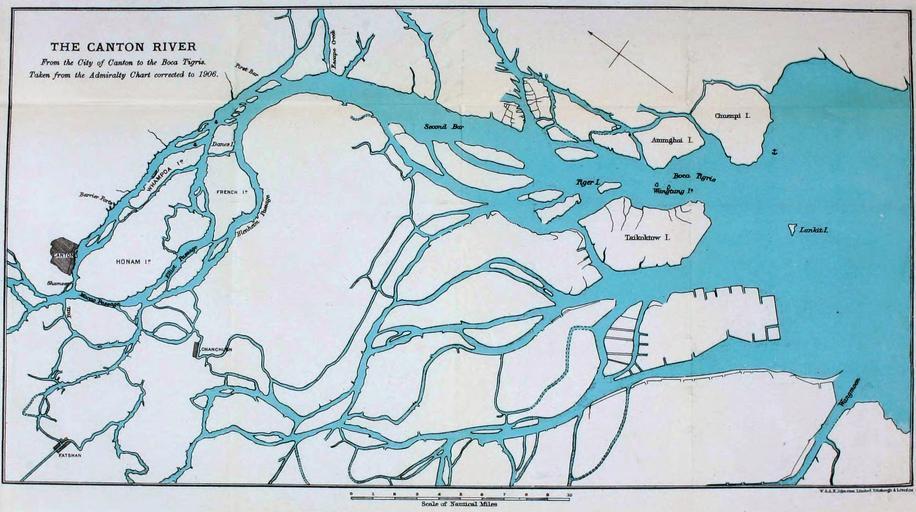 | Keywords: Canton to Bocca Tigris.jpg Map of the city of Canton to the Bocca Tigris Published 1910 Hosea Ballou Morse 1910 http //www archive org/stream/internationalrel01mors page/n199 The International Relations of the Chinese Empire Volume 1 p 144 From the Admiralty Chart PD-old PD-Art-100 Bocca Tigris Old maps of Guangdong Pearl River in Guangzhou |