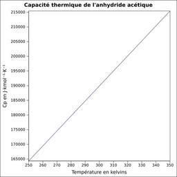 | Keywords: Capacité thermique anhydride acétique.svg fr Capacité thermique liquide calculée d'après <br/> Robert H Perry et Donald W Green Perry's Chemical Engineers' Handbook McGraw-Hill USA 1997 7e éd 2400 p ISBN 0-07-049841-5 p 2-170 own Epop 2010-06-28 Created with Gnumeric Heat capacity |
