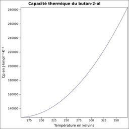 | Keywords: Capacité thermique butan-2-ol.svg fr Capacité thermique liquide calculée d'après <br/> Robert H Perry et Donald W Green Perry's Chemical Engineers' Handbook McGraw-Hill USA 1997 7e éd 2400 p ISBN 0-07-049841-5 p 2-170 own Epop 2010-06-28 Created with Gnumeric Heat capacity |