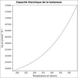 | Keywords: Capacité thermique butanone.svg fr Capacité thermique liquide calculée d'après <br/> Robert H Perry et Donald W Green Perry's Chemical Engineers' Handbook McGraw-Hill USA 1997 7e éd 2400 p ISBN 0-07-049841-5 p 2-170 own Epop 2010-06-28 Created with Gnumeric Heat capacity |
