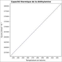 | Keywords: Capacité thermique diéthylamine.svg fr Capacité thermique liquide calculée d'après <br/> Robert H Perry et Donald W Green Perry's Chemical Engineers' Handbook McGraw-Hill USA 1997 7e éd 2400 p ISBN 0-07-049841-5 p 2-170 own Epop 2010-06-28 Created with Gnumeric Heat capacity Diethylamine |