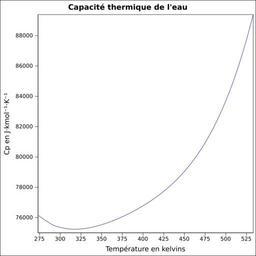 | Keywords: Capacité thermique eau.svg fr Capacité thermique liquide calculée d'après <br/> Robert H Perry et Donald W Green Perry's Chemical Engineers' Handbook McGraw-Hill USA 1997 7e éd 2400 p ISBN 0-07-049841-5 p 2-170 own Epop 2010-06-28 Created with Gnumeric Heat capacity |