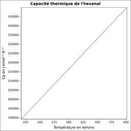 | Keywords: Capacité thermique hexanal.svg fr Capacité thermique liquide calculée d'après <br/> Robert H Perry et Donald W Green Perry's Chemical Engineers' Handbook McGraw-Hill USA 1997 7e éd 2400 p ISBN 0-07-049841-5 p 2-170 own Epop 2010-06-28 Created with Gnumeric Heat capacity |