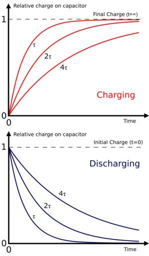 Keywords: Capacitor Charge-Discarge.svg A diagram to show the charge on the plates of a capacitor as it charges and discharges through a resistance Own work made in Inkscape 0 43 05/06/06 jjbeard PD Capacitor diagrams