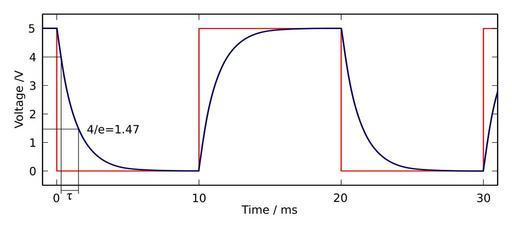 | Keywords: Capacitor Square wave charge-discharge.svg translation possible A diagram of the voltage across a capacitor and resistor blue during repeated charging-discharging by a square wave input voltage red with a period 20ms and a peak voltage of 5V The time constant <i> </i> is approximately 1 2ms Th Own drawing based on Lord Skunk's image Oszilloskopbild-Kondensator-Laden-und-entladen png 2006-11-26 inductiveload PD Capacitor Square wave charge-discharge de svg image Oszilloskopbild-Kondensator-Laden-und-entladen png Capacitor diagrams Waveforms Transverse wave |