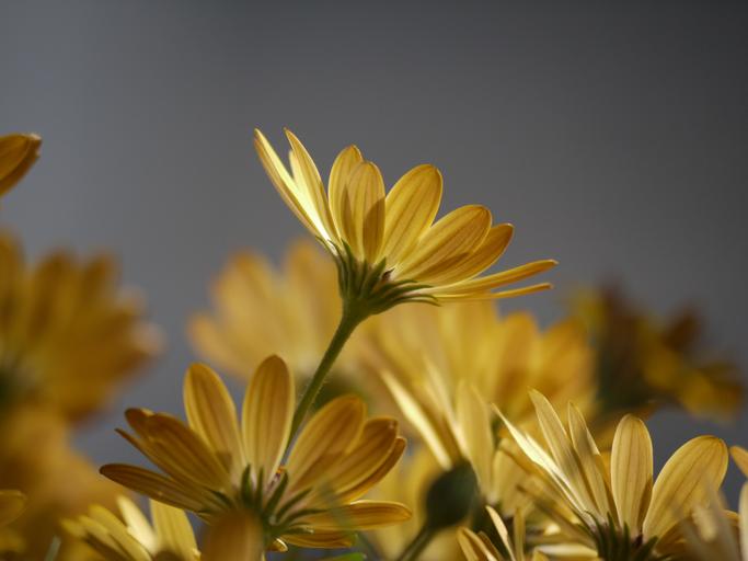 Keywords: cape daisies yellow orange cape basket osteospermum blossom bloom nature spring plant bloom composites asteraceae aster-like sunny sunbeam sun flower background grey