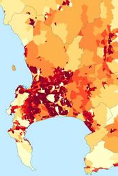 | Keywords: Cape Town 2011 population density map.svg ffffcc <1 inhabitant/km² ffeda0 1 “3 inhabitants/km² fed976 3 “10 inhabitants/km² feb24c 10 “30 inhabitants/km² fd8d3c 30 “100 inhabitants/km² fc4e2a 100 “300 inhabitants/km² e31a1c 300 “1000 inhabitants/km² bc0026 1000 “3000 inhabitants/km² 800026 >3000 inhabitants/km² Statistics South Africa's Census 2011 is the source of the basic population data The map results from my own processing of the data Htonl 2015-09-26 http //beta2 statssa gov za/ page_id 425 Demographic maps of South Africa Maps of Cape Town The following license applies to the population data on which the map is based the user acknowledges Stats SA as the source of the basic data wherever they process apply utilise publish or distribute the data and also that they specify that the relevant application and analysis where applicable result from their own processing of the data The following tag applies to the map itself |