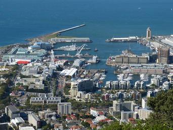 Keywords: cape town south africa distant view outlook city panorama ocean sea port tourism ship boats yacht