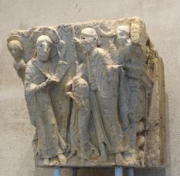 Keywords: Capital, Moutiers-Saint-Jean, Burgundy, France, The Journey to Emmaus, c. 1125-1130 AD, limestone - Fogg Art Museum, Harvard University - DSC00670.jpg en Exhibit in the Fogg Art Museum Harvard University Cambridge Massachusetts USA This artwork is in the public domain because the artist died more than 70 years ago 2015-04-11 10 21 43 own Daderot other versions PD-old-70 cc-zero Romanesque capitals in the Fogg Art Museum