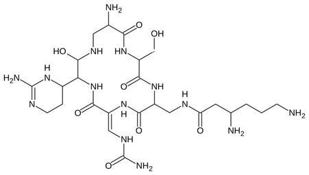 Keywords: Capreomycin.svg Structural diagram of capreomycin Created using http //www acdlabs com/download/chemsk html ACD/ChemSketch 10 0 and Inkscape Own 2006-12-10 Fvasconcellos Aminoglycoside antibiotics Peptides
