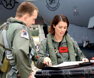 | Keywords: Capt. Nicole Malachowski, F-15E female pilot, looks over checklists before flying a sortie 1763646018.jpg en Capt Nicole Malachowski and Capt Darin Tate look over checklists before flying a sortie at RAF Lakenheath England last month Both are pilots for the 494th Fighter Squadron Capt Malachowski has been selected to fly for the U S Air Force Air Demonstration Squadron Thunderbirds 2006 season making history as the first female demonstration pilot in the 52-year history of the team 2005-07-06 http //www stripes com/news/newest-thunderbird-pilot-shows-up-those-who-said-girls-can-t-do-that-1 35474 KRISTI MULDER / COURTESY OF U S AIR FORCE other versions 494th Fighter Squadron 48th Fighter Wing Royal Air Force Lakenheath United Kingdom PD-USGov Women in the United States Air Force Fighter pilots Fighter aircraft F-15E Strike Eagle Flight suits FlightGear G-suits Harnesses Life jackets Uploaded with UploadWizard |