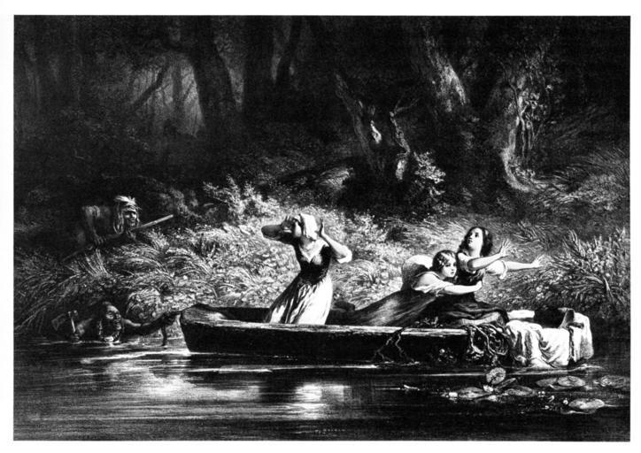 | Keywords: Capture of the Daughters of D. Boone and Callaway by the Indians.jpg Raub der Töchter von Daniel Boone und von Callaway durch die Indianer Lithographie von Karl Bodmer und Jean-François Millet die das Bildmotiv 1852 gemeinsam ausarbeiteten Capture of the Daughters of D Boone and Callaway by the Indians Lithograph after Karl Bodmer and Jean-François Millet Source Annals of the United States Illustrated The Pioneers Nr 1 Capture of the Daughters of D Boone and Callaway by the Indians Composed and Drawnd on stone by K Bodmer Goupil Co Paris - London - Berlin New York 1852 See also Hans Läng Indianer waren meine Freunde Leben und Werk Karl Bodmers 1809 “1893 Hallwag Bern/Stuttgart 1976 Page 144 and 145 ISBN 3-444-10198-8<br /> Another version has the name Young Girls Surprised by Indians Lithograph after Karl Bodmer and Jean-François Millet The Inter-North Art Foundation Joselyn Art Museum 1852 Karl Bodmer 11 Februar 1809; 30 Oktober 1893 and Jean-François Millet 4 Oktober 1814; 20 Januar 1870 Reproduction of an Lithograph that is in the public domain because of its age 200px 200px PD-old-100-1923 1893 PD-old Engravings of people Jean-François Millet II |