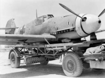 | Keywords: Captured Me 109F JG27 at El Alamein 1942.jpg Western Desert Egypt 14 August 1942 A captured German Messerschmitt Me 109F yellow 5 of 6/JG27 6th Squadron 27th Fighter Wing piloted by Lieutenant Gert Mix which made a forced landing in the rear of the Australian lines near El Alamein is loaded on to a transport to be taken to RAF workashops for examination by experts Other German planes had tried to destroy this plane after landing in order to prevent expert examination 024838 1942-08-14 Australian armed forces Image copyright Copyright expired - public domain frame cropped PD-Australia Messerschmitt Bf 109 First Battle of El Alamein Fliegerführer Afrika Jagdgeschwader 27 Captured aircraft Black and white photographs |