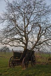 Keywords: car age tree wheels forest idyll outdoor nature old agriculture field arable autumn landscape