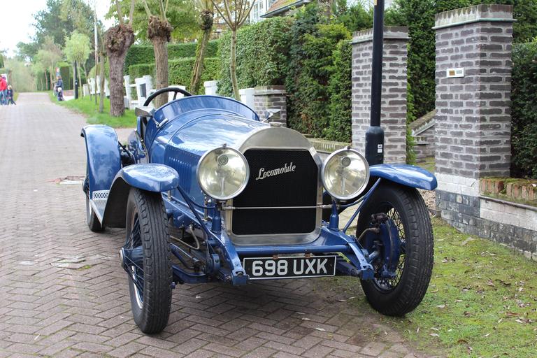 Keywords: car classic car locomobile blue street parking