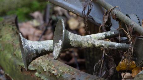 Keywords: car horns classic car vintage junk yard scrapyard 1950s old rust leaves rusted rusty aged automobile abandoned weathered forgotten nostalgia neglected corroded
